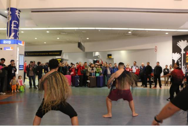 The guests were greeted by the HaKa war Dance of the Maori people at the airport.